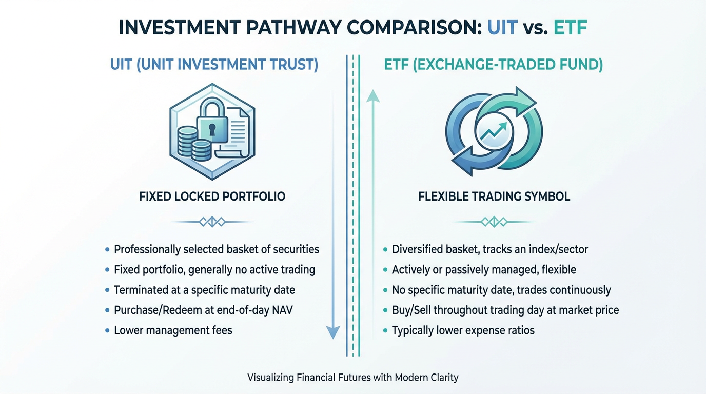 UITs suit investors seeking a truly passive buy-and-hold approach with a defined time horizon. If you are saving for a goal with a specific target date, such as a child's education expense in three years, a UIT maturing at that time provides a disciplined approach. The fixed portfolio also offers complete transparency, with no surprises from management changes or rebalancing decisions.