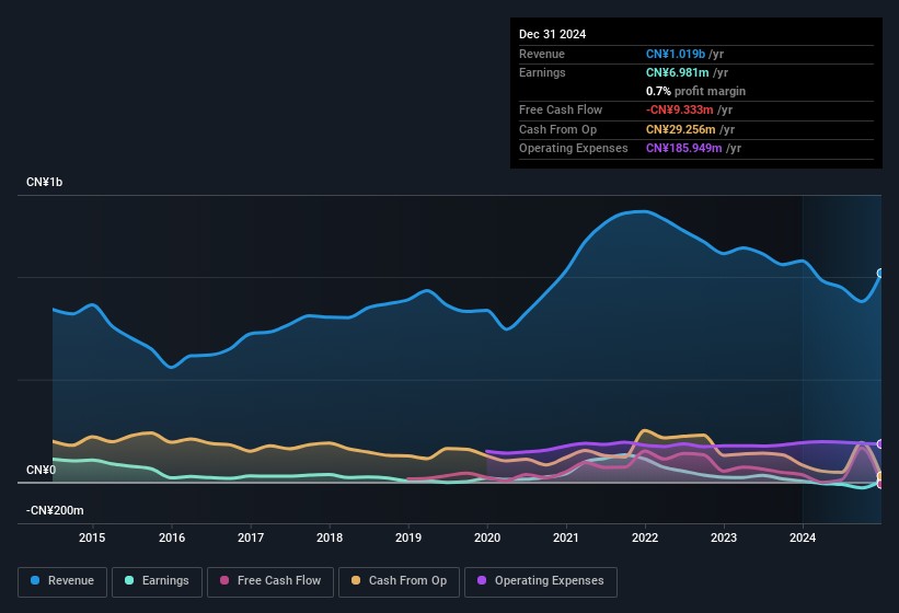 World Precision Machinery (SGX:B49) reported its Full Year 2024 results, showing a revenue of CN¥1.02 billion, down 5.5% from FY 2023, but net income increased by 16% to CN¥6.98 million. The earnings per share (EPS) rose to CN¥0.017 from CN¥0.015 in FY 2023, with a profit margin improvement to 0.7%. However, shares have declined by 4.3% over the past week, and there are four warning signs to consider regarding the company's performance.