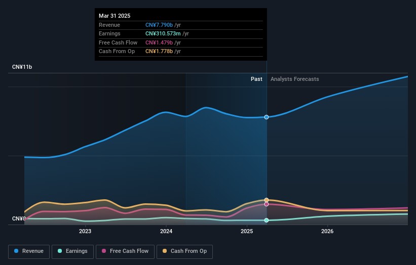 Kehua Data demonstrates strong growth potential with earnings forecasted to grow significantly at 45.24% annually, outpacing the broader CN market. Despite recent quarterly earnings showing a slight decline in net income to CNY 68.94 million, the company is trading below its estimated fair value by 9.2%. However, share price volatility and lack of insider trading information over the past three months are considerations for potential investors focusing on stability and insider confidence.