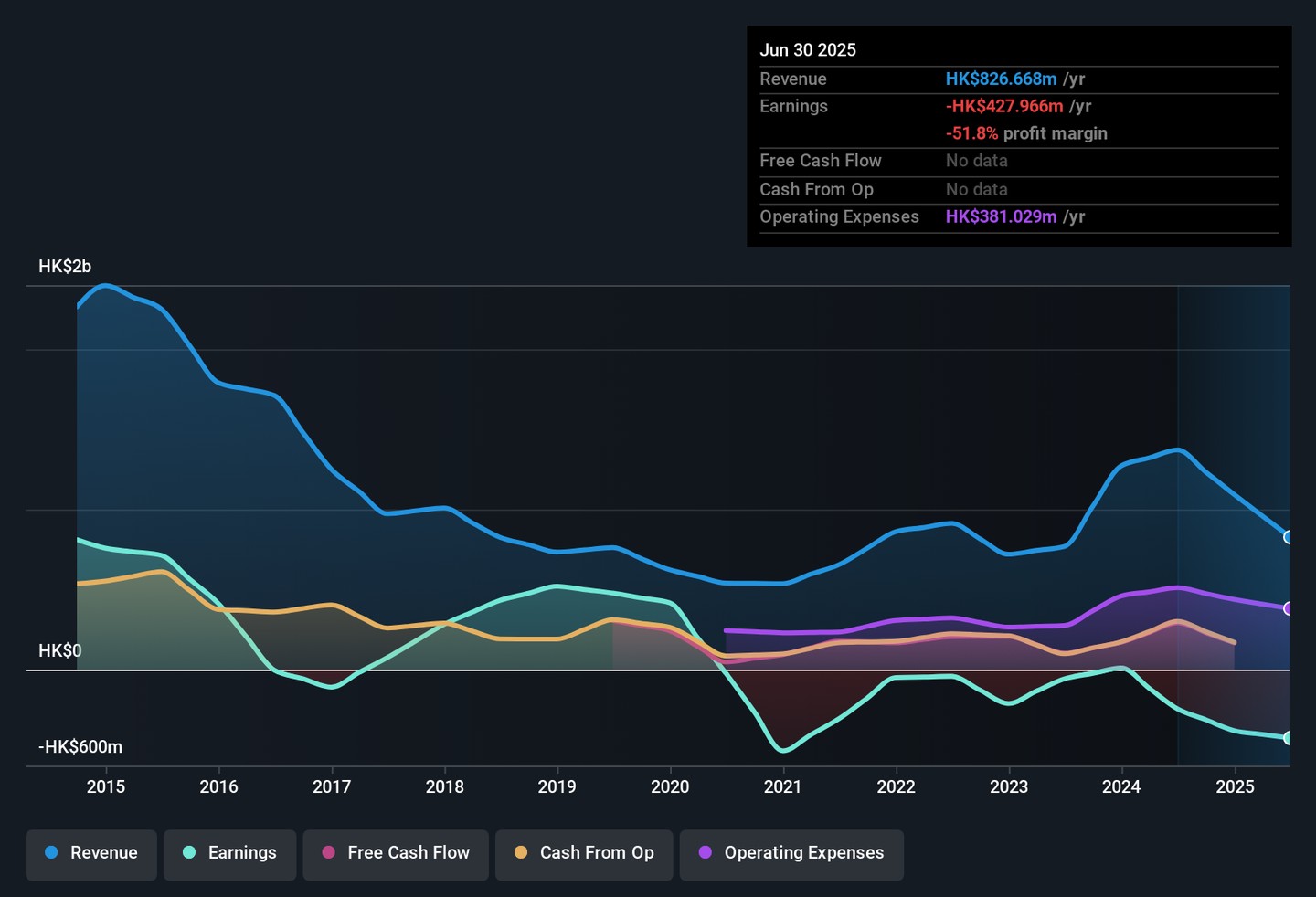 Playmates Holdings reported a net loss of HK$205.6 million for the first half of 2025, widening by 29% from the previous year. Revenue fell by 50% to HK$261.1 million, resulting in a loss per share of HK$0.099, compared to HK$0.077 in 1H 2024. The company's share price remains stable, but it faces two warning signs in investment analysis, one of which is potentially serious.