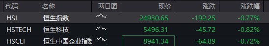 Hong Kong stocks: As of the time of writing, the Hang Seng Index fell 0.77%, and the Hang Seng Technology Index fell 0.82%.