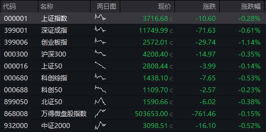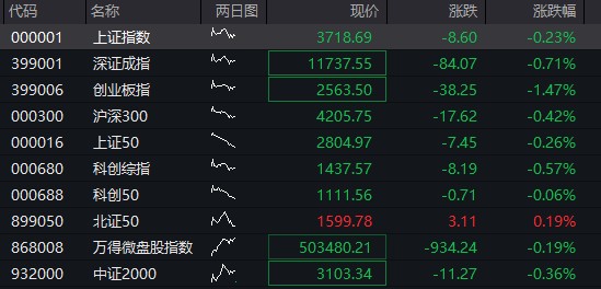 A-shares: As of the time of writing, the Shanghai Composite Index fell 0.23%, the Shenzhen Component Index fell 0.71%, and the ChiNext Index fell 1.47%.