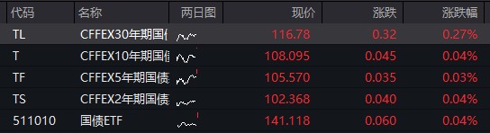 Government bond futures opened, with the 30-year main contract rising 0.30%, the 10-year main contract rising 0.06%, the 5-year main contract rising 0.06%, and the 2-year main contract rising 0.02%.
