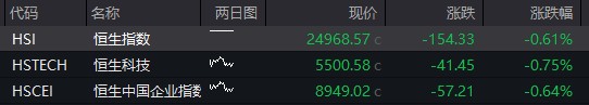 The Hang Seng Index opened down 0.61%, and the Hang Seng Tech Index fell 0.75%. Xiaomi and Pop Mart dropped over 2%, while XPeng rose 3.5%, having previously announced financial results.