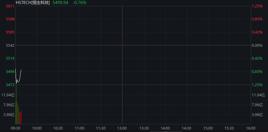 The Hang Seng Tech Index fell over 1%. Kuaishou dropped 5%, JD Health fell over 3%, and Sunny Optical Technology rose against the trend, increasing over 6%.