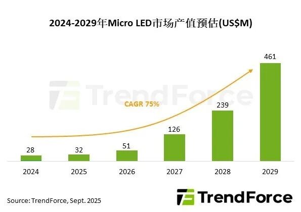 TrendForce: It is expected that the market value of Micro LED chips will reach 461 million USD by 2029