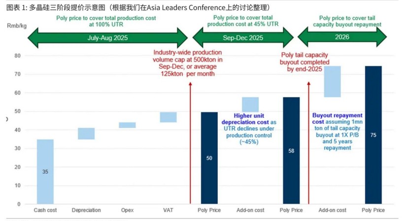 In Chart 1, Goldman Sachs illustrates the three-phase price increase for polysilicon discussed during our panel meeting at the Asia Leaders Conference.