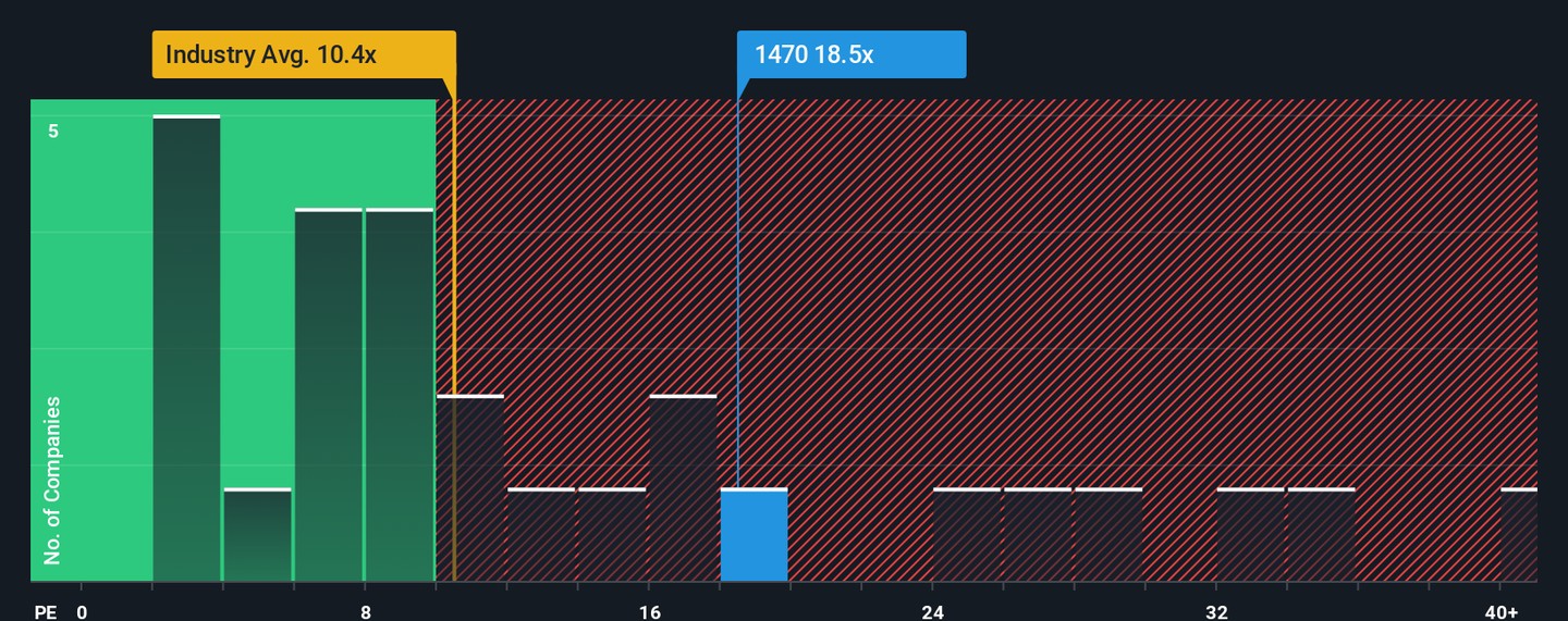 Prosper One International Holdings Company Limited (HKG:1470) has seen a significant 38% drop in share price over the past month, despite a 184% increase over the last year. The company's P/E ratio stands at 18.5x, higher than the Hong Kong market average, raising concerns about potential overvaluation. While earnings per share grew by 323% last year, long-term growth has been inconsistent. Analysts warn that if earnings trends do not improve, shareholders may face risks as the high P/E could decline, reflecting investor sentiment and future expectations.
