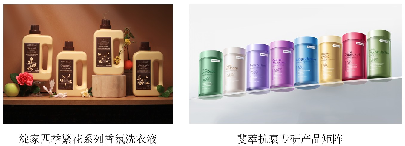 The structural shift in consumer demand brings enormous market opportunities. RYC uses this as a starting point to promote strategic upgrades and has successfully created its own brands LYCOCELLE ZhanJia and FineNutri. ZhanJia focuses on high-end fragrance home cleaning, addressing unmet self-care cleaning scenarios with concepts like "special care for special clothes" and "fragrance cleaning," creating a product mix that integrates fragrance experience and functional efficacy. FineNutri focuses on oral beauty, centering around scientifically anti-aging ingredients like ergothioneine and ruby oil, combined with technological innovations such as synthetic biology, to create product solutions that balance ingredient efficacy and user experience.
