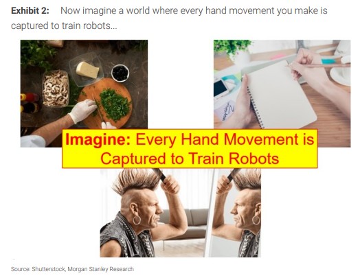 According to Hard AI, Morgan Stanley stated in its latest research report that with the development of AI robots and embodied artificial intelligence, companies like Tesla, Meta, and Figure AI are massively collecting visual data to train Visual Language Action (VLA) models.