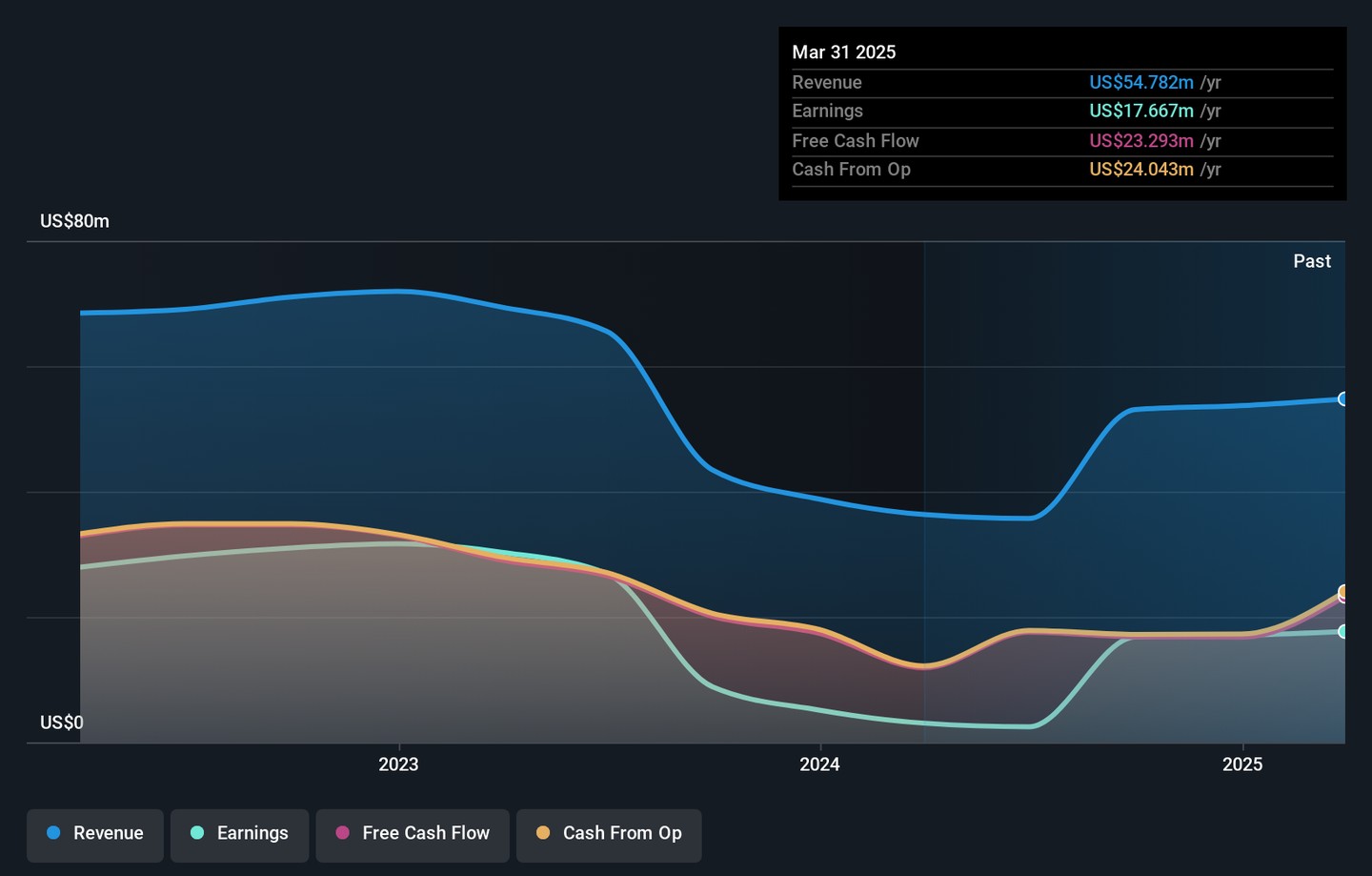 Operations: The company generates revenue primarily from its banking segment, totaling $56.75 million.