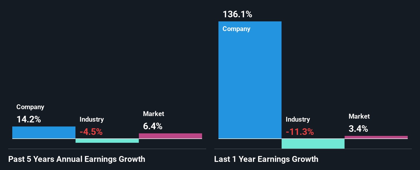 When you consider the fact that the industry earnings have shrunk at a rate of 4.5% in the same 5-year period, the company's net income growth is pretty remarkable.