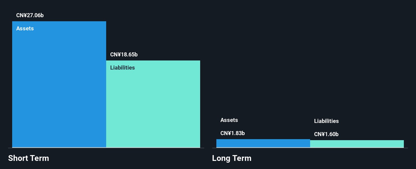 Rongan Property Ltd. faces challenges as its revenue and net income have significantly declined compared to the previous year, with recent earnings showing CN¥3.90 billion in revenue and CN¥36.45 million in net income. Despite being unprofitable, the company has a satisfactory debt position, evidenced by a reduced debt-to-equity ratio from 149.1% to 26.6% over five years and operating cash flow covering its debt well at 102.8%. Short-term assets of CN¥13.1 billion exceed both short-term and long-term liabilities, but recent removal from the FTSE All-World Index signals potential investor concerns about future prospects amidst governance changes approved recently.