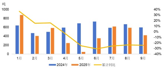 Table 1 Import Situation of China's Rare Earth Products from January to September 2025 (Unit: tons, USD ten thousand)
