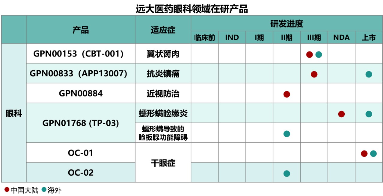 In addition to dry eye syndrome, ophthalmic diseases represented by myopia are widely spreading with the popularity of electronic products. The ophthalmic medical sector, known for its "golden eyes and silver teeth," is becoming increasingly competitive. According to Frost & Sullivan, the Chinese ophthalmic drug market is expected to reach 44 billion yuan by 2025 and climb to 108.4 billion yuan by 2030 Against the backdrop of rapid growth in the ophthalmic drug market in China, GRANDPHARMA has built a "specialized, full-series, and multi-variety" innovative drug product system after years of deep cultivation, reserving several globally innovative products for the treatment of "dry eye syndrome," "demodex blepharitis," "post-operative anti-inflammatory analgesia," "pterygium," and "myopia," steadily enhancing the company's market position in the ophthalmic field.