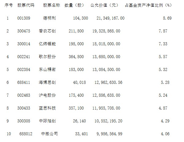 In terms of holdings, among the top ten heavy stocks, except for Dongshan Precision (002384.SZ) and Zhongji Xuchuang (300308.SZ), all other eight are newly added heavy positions, including Demingli (001309.SZ), Shannon Semiconductor (300475.SZ), Lens Technology (300433.SZ), and Zhongwei Company (688012.SH).