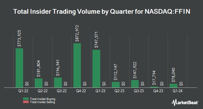 NASDAQ:FFIN traded up $0.13 during mid-day trading on Wednesday, hitting $31.47. The company had a trading volume of 321,764 shares, compared to its average volume of 531,474. The business has a fifty day simple moving average of $34.55 and a 200-day simple moving average of $35.05. The firm has a market capitalization of $4.50 billion, a price-to-earnings ratio of 18.65 and a beta of 0.86. First Financial Bankshares, Inc. has a 1 year low of $30.50 and a 1 year high of $44.66.