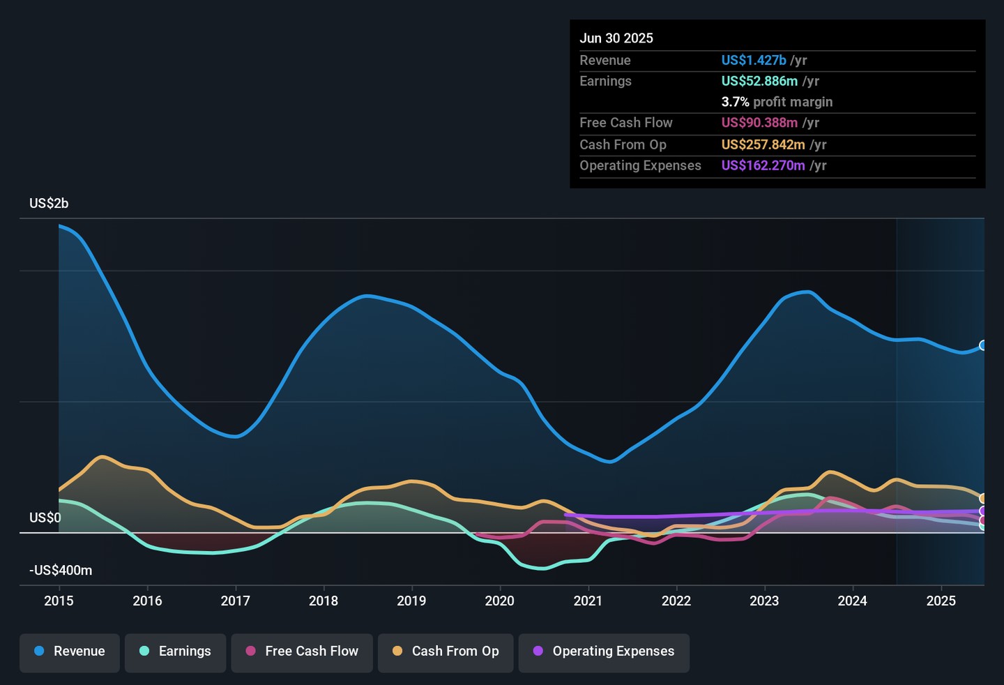 RPC (RES) reported net profit margins of 3.7%, a decline from 7.9% in the previous year, indicating a drop in profitability on a year-over-year basis. Earnings saw negative growth over the last twelve months, and while the company’s earnings are projected to grow at 9.9% per year moving forward, that pace lags the broader US market’s anticipated 15.7% growth. With valuation multiples above industry and peer averages, investors will be weighing this modest growth outlook against the company’s return to profitability over the last five years as well as the high quality of current earnings.