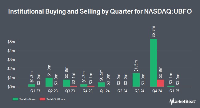 Several other large investors also recently bought and sold shares of UBFO. Bank of America Corp DE grew its position in United Security Bancshares by 1,292.4% during the 4th quarter. Bank of America Corp DE now owns 3,648 shares of the financial services provider's stock worth $37,000 after purchasing an additional 3,386 shares during the last quarter. Global Wealth Management Investment Advisory Inc. acquired a new position in shares of United Security Bancshares in the first quarter valued at about $110,000. Y Intercept Hong Kong Ltd increased its holdings in shares of United Security Bancshares by 20.6% in the first quarter. Y Intercept Hong Kong Ltd now owns 14,360 shares of the financial services provider's stock valued at $129,000 after purchasing an additional 2,452 shares during the period. Goldman Sachs Group Inc. increased its holdings in shares of United Security Bancshares by 64.3% in the first quarter. Goldman Sachs Group Inc. now owns 59,523 shares of the financial services provider's stock valued at $533,000 after purchasing an additional 23,284 shares during the period. Finally, Empowered Funds LLC increased its holdings in shares of United Security Bancshares by 7.9% in the first quarter. Empowered Funds LLC now owns 55,608 shares of the financial services provider's stock valued at $498,000 after purchasing an additional 4,068 shares during the period. Hedge funds and other institutional investors own 30.88% of the company's stock.