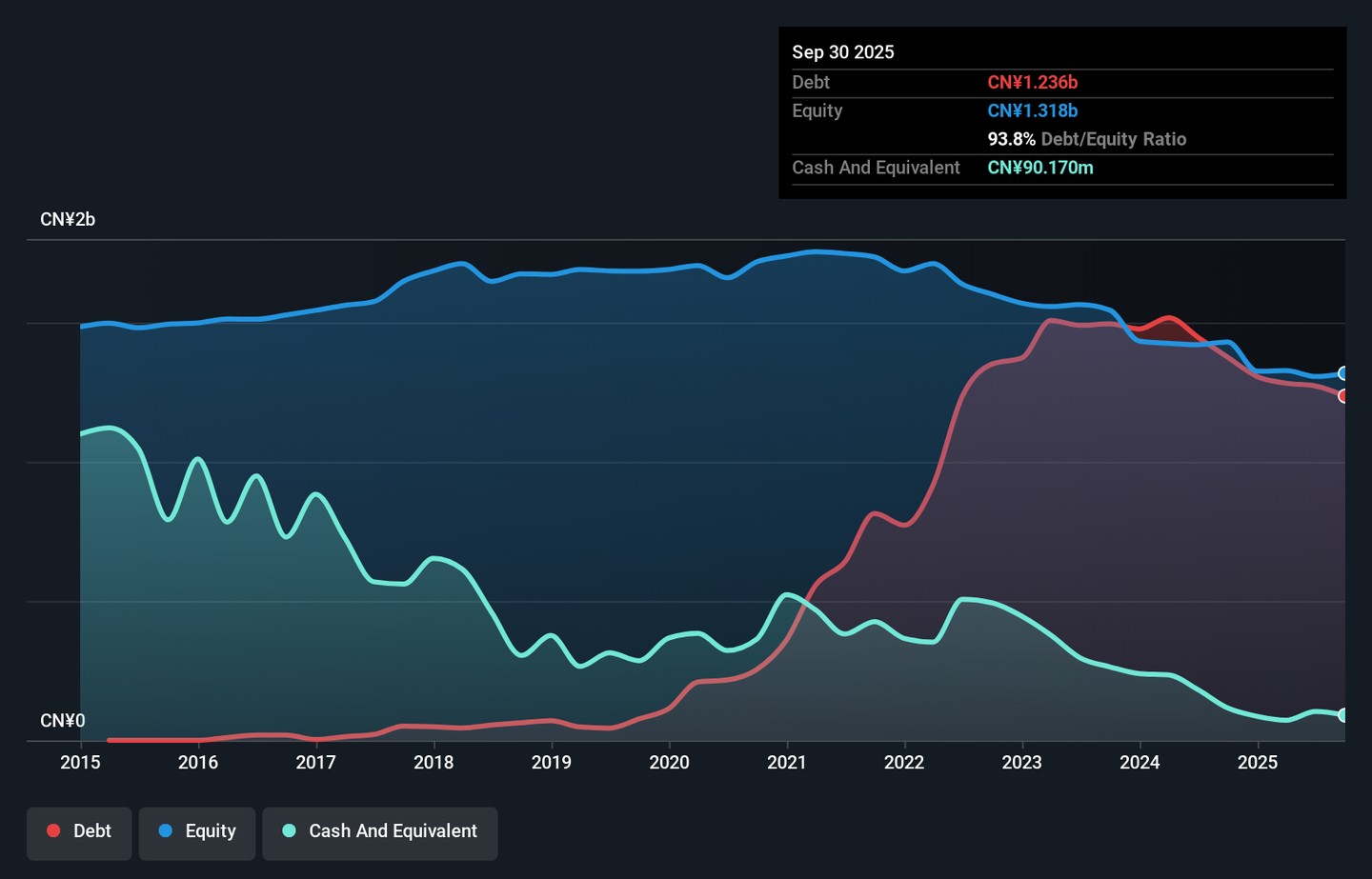 Jiangsu Skyray Instrument Co., Ltd. reported sales of CN¥434.87 million for the nine months ending September 30, 2025, down from CN¥588.86 million the previous year, with a net loss narrowing to CN¥1.22 million from CN¥6.84 million. Despite being unprofitable, the company maintains a strong cash position with short-term assets of CN¥3 billion surpassing both its short-term and long-term liabilities, suggesting financial resilience in the near term. The management team is seasoned with an average tenure of 5.3 years; however, challenges include high debt levels and declining earnings over five years at nearly 40% annually.