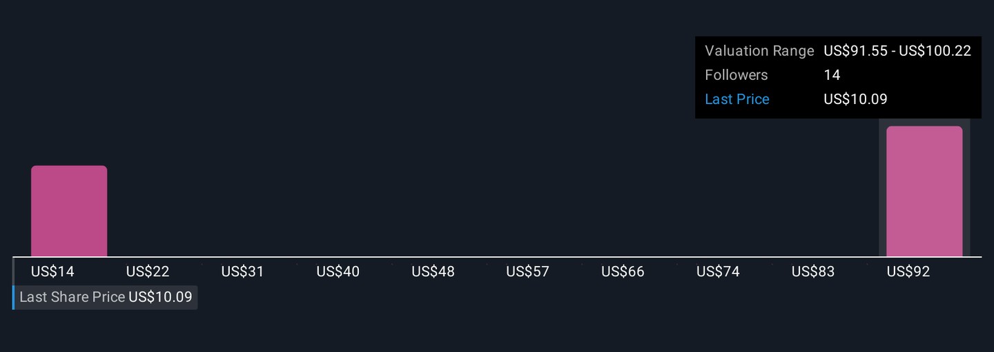 Three Simply Wall St Community members estimate fair value for Emergent BioSolutions ranging from US$13.50 to US$100.22. With revenue now so dependent on robust contract momentum, these widely differing views reflect how outlooks can change as contract visibility or political environments shift.