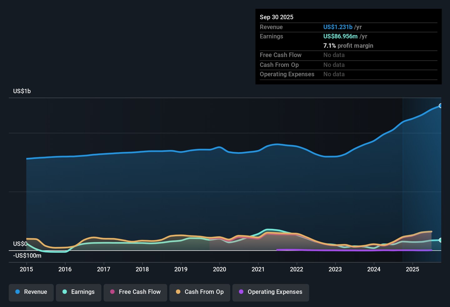 Safety Insurance Group (SAFT) posted a net profit margin of 7.1%, edging ahead of last year’s 6.8%, with EPS showing 16.7% growth for the year. This upbeat result comes despite a longer-term backdrop where average annual earnings have dropped 22.2% over five years. For investors, high-quality earnings, positive profitability trends, and an attractive dividend balance out concerns around continued long-term earnings declines and shares currently trading at $70.37, above fair value estimates.