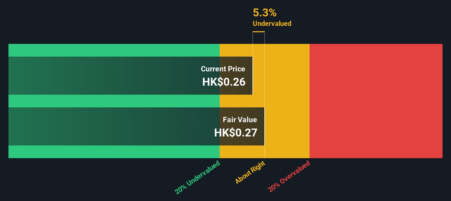 • Current share price of HK$0.26 suggests Qeeka Home (Cayman) is potentially trading close to its fair value