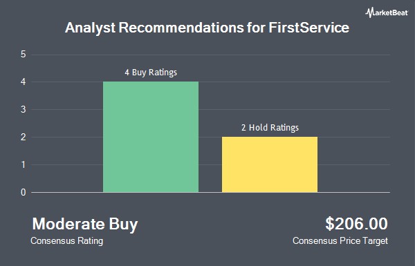 A number of other research firms have also recently issued reports on FSV. Zacks Research cut FirstService from a "strong-buy" rating to a "hold" rating in a report on Tuesday, September 23rd. Wall Street Zen lowered shares of FirstService from a "buy" rating to a "hold" rating in a report on Saturday, October 25th. Weiss Ratings reissued a "buy (b-)" rating on shares of FirstService in a research report on Wednesday, October 8th. Raymond James Financial reduced their target price on shares of FirstService from $225.00 to $215.00 and set an "outperform" rating on the stock in a research report on Monday, October 27th. Finally, Stifel Nicolaus reduced their target price on shares of FirstService from $230.00 to $215.00 and set a "buy" rating on the stock in a research report on Monday, October 27th. Seven research analysts have rated the stock with a Buy rating and one has issued a Hold rating to the company's stock. According to data from MarketBeat.com, FirstService currently has a consensus rating of "Moderate Buy" and an average target price of $211.83.