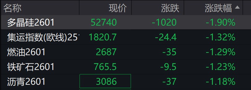 Commodity futures opened, with the main contract for the shipping European line dropping over 2%, and polysilicon, fuel oil, asphalt, LU fuel oil, and iron ore falling over 1%. Urea, ethylene glycol, and rapeseed oil rose over 1%.