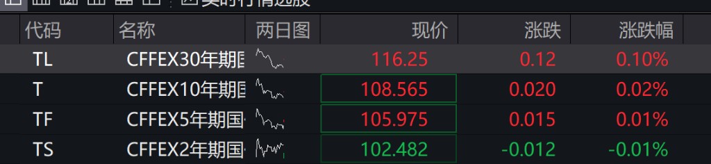 Government bonds rose across the board, with the 30-year main contract up 0.10%, the 10-year main contract up 0.03%, the 5-year main contract up 0.05%, and the 2-year main contract up 0.01%.