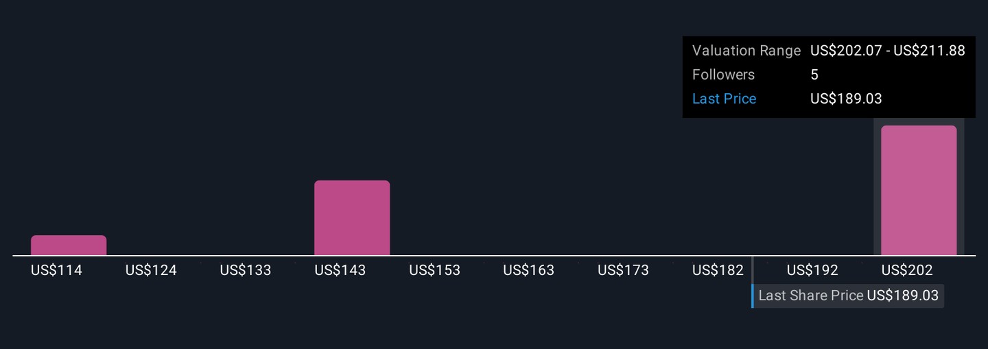Three fair value estimates from the Simply Wall St Community range from US$113.81 to US$211.88, highlighting wide differences in opinion on potential upside or downside. As you compare these viewpoints, remember that lingering exposure to delays and weakness in process end-markets continues to be a key factor influencing the company's performance outlook.