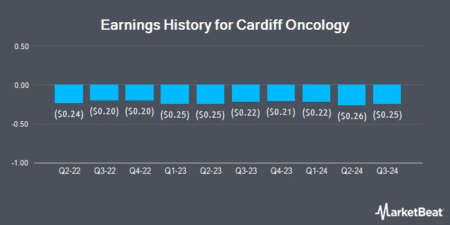 Cardiff Oncology (NASDAQ:CRDF - Get Free Report) released its quarterly earnings results on Thursday. The company reported ($0.17) earnings per share for the quarter, topping the consensus estimate of ($0.20) by $0.03, Zacks reports. Cardiff Oncology had a negative net margin of 9,344.14% and a negative return on equity of 77.94%.