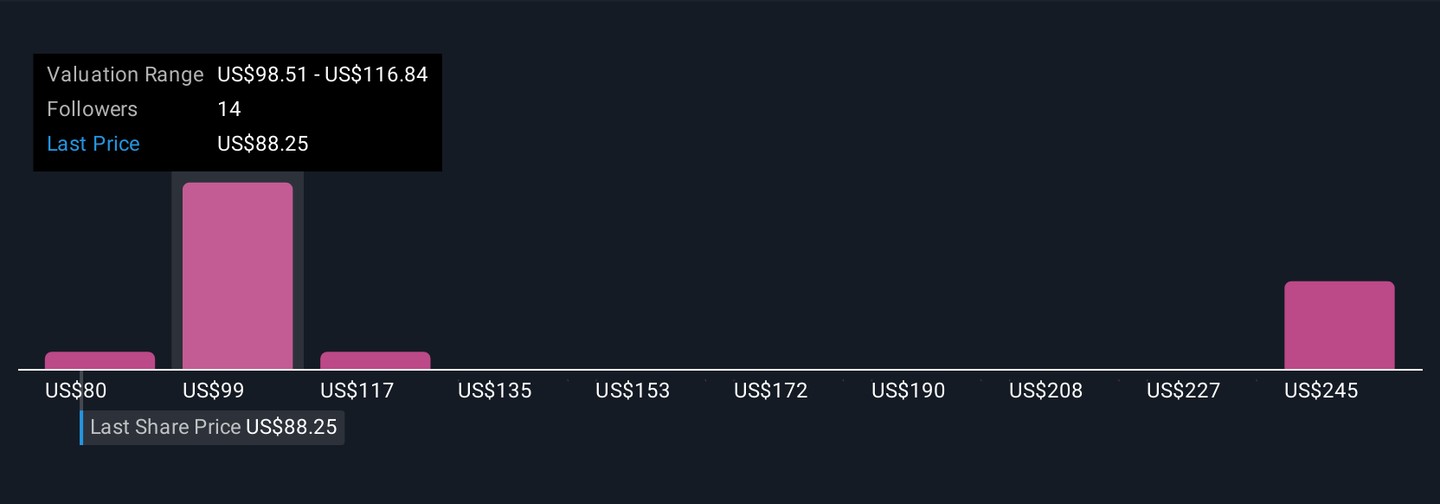 Six members of the Simply Wall St Community estimate Allison’s fair value ranges widely from US$84 to US$222.39 per share. As you weigh these diverse viewpoints, keep in mind how ongoing North America market softness could influence future results and consider exploring several alternative perspectives.