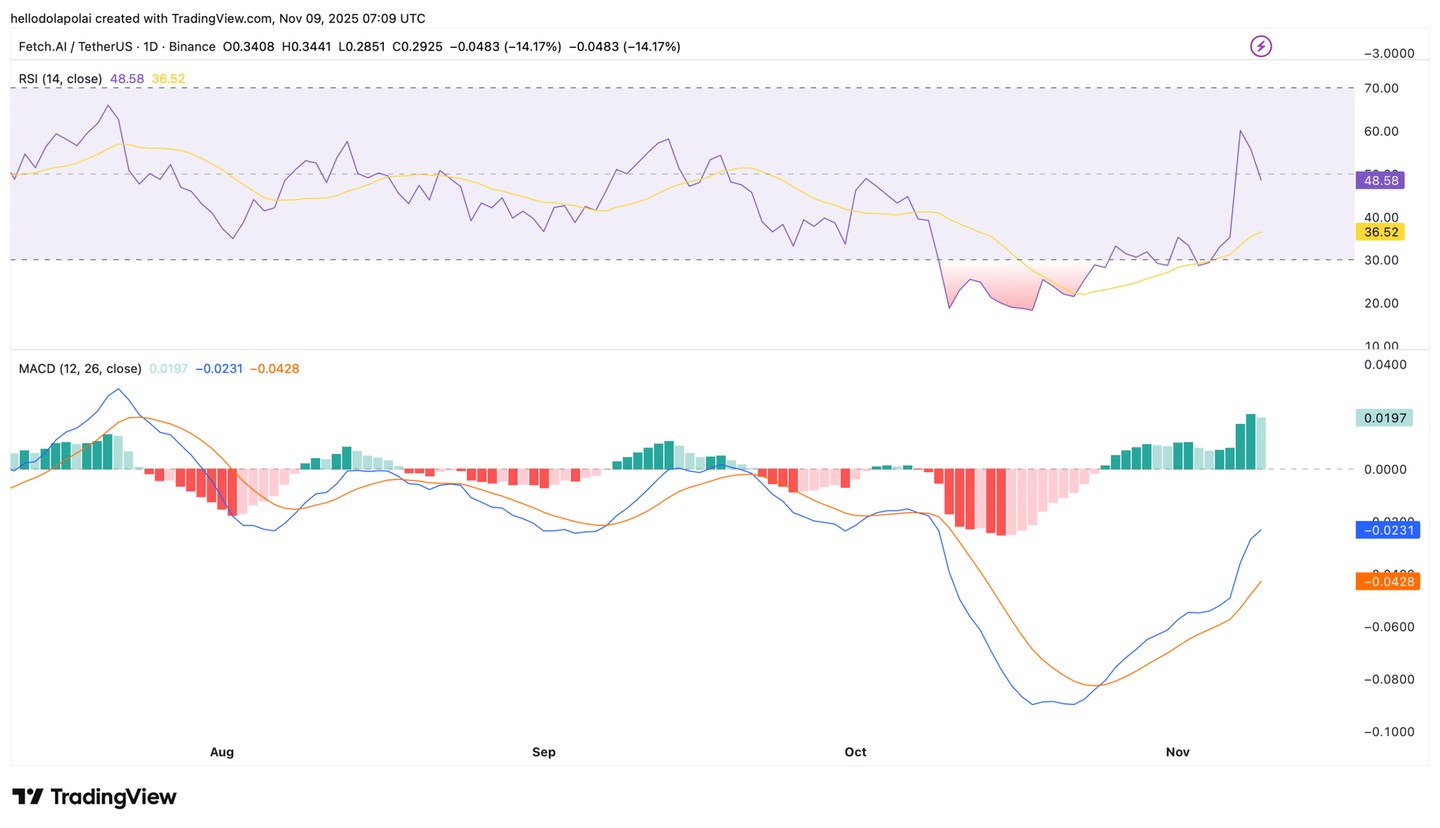 If the RSI makes an upward reversal and the MACD continues to trend into the positive zone, FET could be primed for a rebound.