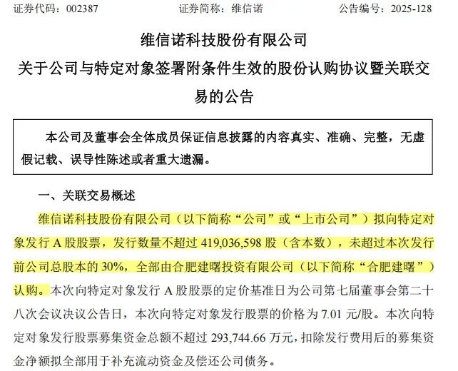Previously, Hefei Jianshu already held 11.45% of the company's shares. This time, Visionox plans to issue 419 million shares to Hefei Jianshu at an issuance price of 7.01 yuan per share, with a total fundraising amount not exceeding 2.937 billion yuan. After the issuance is completed, Hefei Jianshu's shareholding ratio will increase to 31.89%.