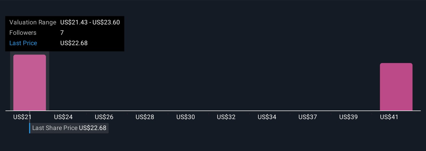 Simply Wall St Community members provided three fair value estimates for Oceaneering, ranging from US$21.43 to US$43.12 per share. While opinions differ, keep in mind that ongoing sector cyclicality presents a risk that could affect the company’s financial trajectory going forward.