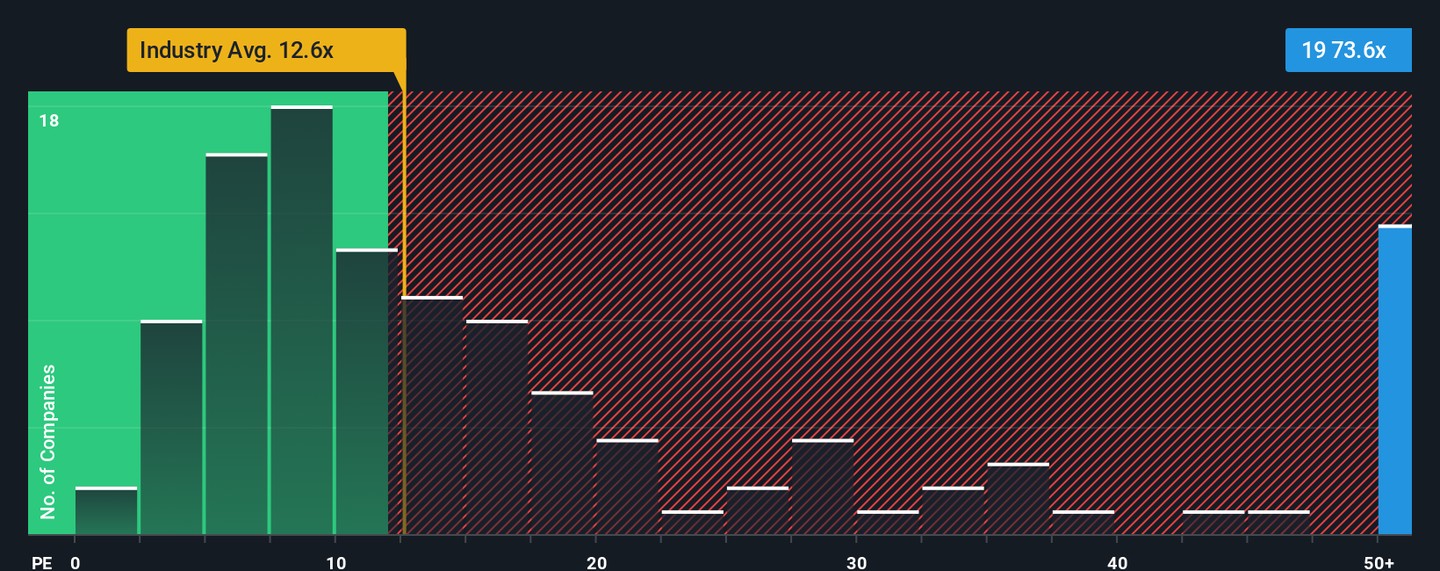 Taking a different approach, Swire Pacific’s share price weighs in at 73.6 times its earnings, which is much higher than both the Hong Kong Industrials average of 12.8 times and the peer average of 13.5. Even when compared to a fair ratio of 16.2, this suggests investors are exposed to significant valuation risk if market sentiment shifts. Is the premium justified, or could this leave little cushion for disappointment?