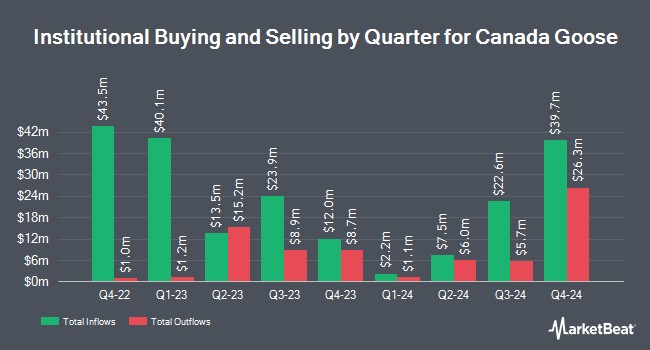 A number of other hedge funds and other institutional investors have also modified their holdings of the stock. Public Employees Retirement System of Ohio lifted its holdings in Canada Goose by 5.8% in the second quarter. Public Employees Retirement System of Ohio now owns 16,791 shares of the company's stock worth $187,000 after purchasing an additional 914 shares during the period. TD Asset Management Inc increased its stake in Canada Goose by 3.3% during the 1st quarter. TD Asset Management Inc now owns 51,512 shares of the company's stock valued at $408,000 after buying an additional 1,656 shares during the period. Mackenzie Financial Corp raised its position in shares of Canada Goose by 8.7% during the 1st quarter. Mackenzie Financial Corp now owns 23,223 shares of the company's stock worth $184,000 after buying an additional 1,864 shares in the last quarter. Versor Investments LP raised its position in shares of Canada Goose by 14.3% during the 2nd quarter. Versor Investments LP now owns 38,988 shares of the company's stock worth $436,000 after buying an additional 4,888 shares in the last quarter. Finally, Charles Schwab Investment Management Inc. lifted its stake in shares of Canada Goose by 62.1% in the 1st quarter. Charles Schwab Investment Management Inc. now owns 22,693 shares of the company's stock worth $180,000 after acquiring an additional 8,690 shares during the period. 83.64% of the stock is currently owned by institutional investors.