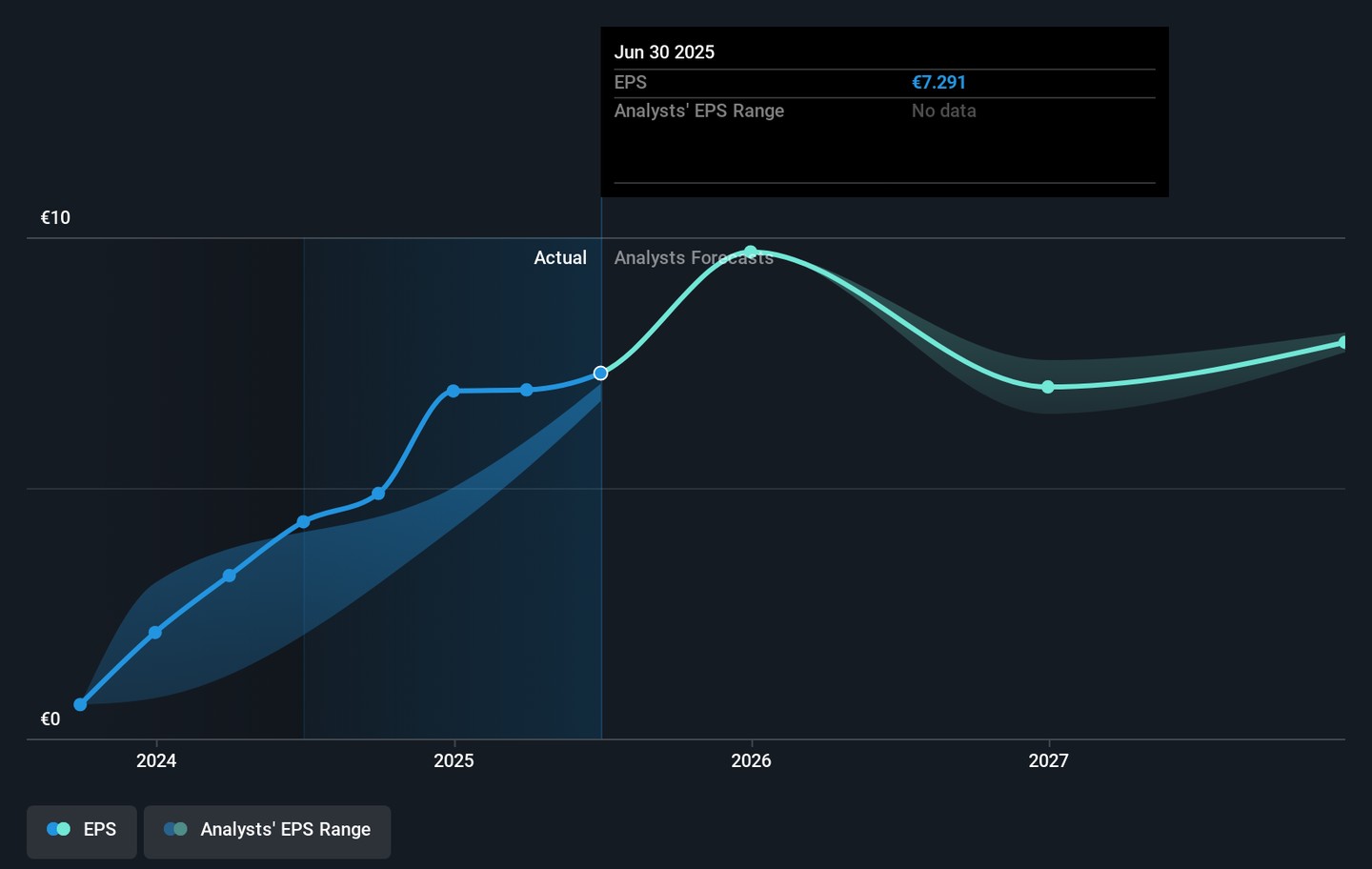 MBB (ETR:MBB) investors have seen a total return of 112% over the past five years, significantly outpacing the market's 12% return. Despite a recent 4.5% drop in share price, MBB's earnings per share (EPS) grew at 11% annually, slower than the 14% annual share price growth. The total shareholder return (TSR) for the last year is 82%, indicating improved performance. However, potential investors should consider risks, as there is one warning sign for MBB.