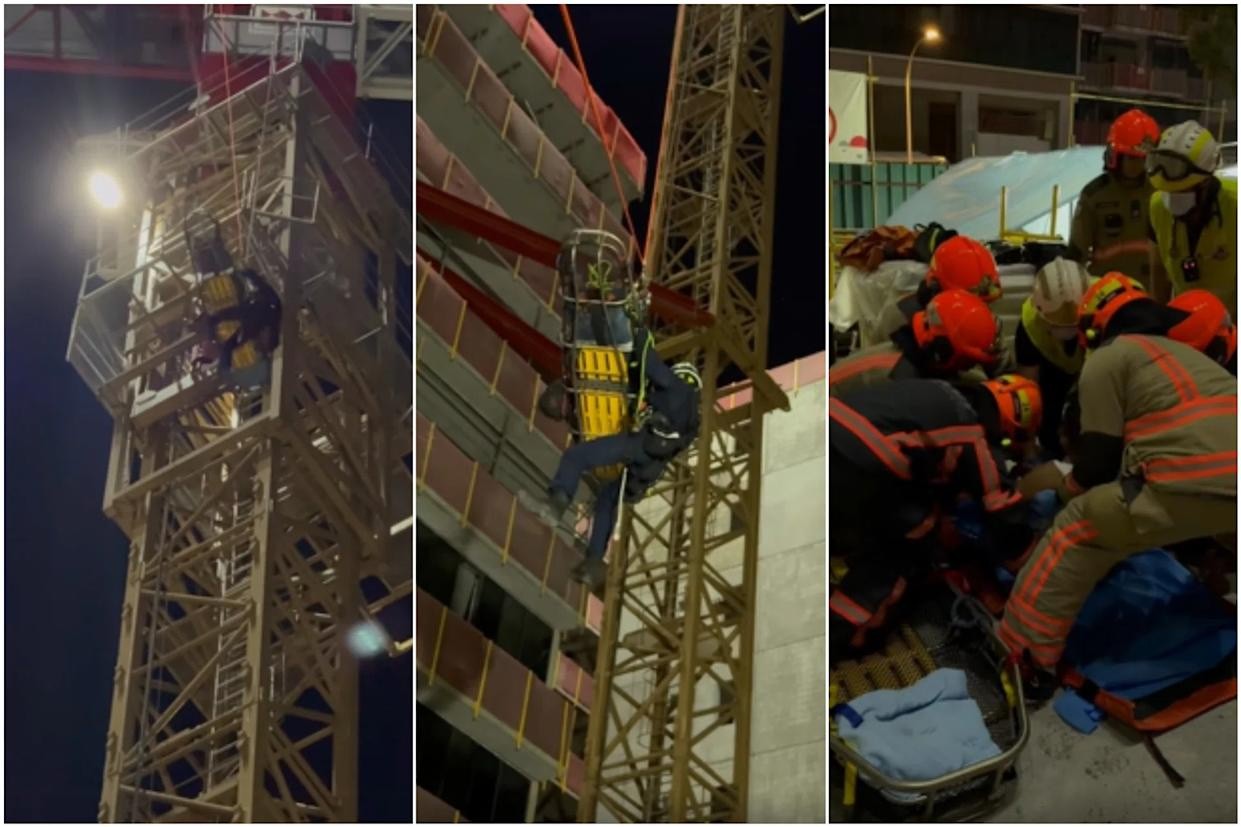 A worker who felt unwell was secured to a stretcher and lowered to the ground from the top of a tower crane. He was accompanied by a Dart rescuer.
