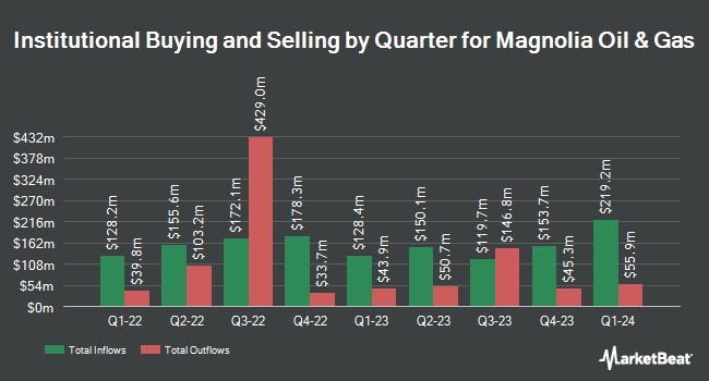 Other hedge funds and other institutional investors also recently made changes to their positions in the company. Mitsubishi UFJ Asset Management Co. Ltd. increased its position in shares of Magnolia Oil & Gas by 236.2% during the 2nd quarter. Mitsubishi UFJ Asset Management Co. Ltd. now owns 1,190 shares of the company's stock worth $27,000 after purchasing an additional 836 shares in the last quarter. Caitong International Asset Management Co. Ltd bought a new stake in Magnolia Oil & Gas during the 2nd quarter worth approximately $30,000. GAMMA Investing LLC increased its holdings in Magnolia Oil & Gas by 98.6% during the 2nd quarter. GAMMA Investing LLC now owns 5,009 shares of the company's stock valued at $113,000 after purchasing an additional 2,487 shares in the last quarter. Smartleaf Asset Management LLC raised its position in Magnolia Oil & Gas by 34.3% in the 1st quarter. Smartleaf Asset Management LLC now owns 5,072 shares of the company's stock valued at $128,000 after purchasing an additional 1,295 shares during the last quarter. Finally, Pacer Advisors Inc. acquired a new position in Magnolia Oil & Gas in the first quarter worth $136,000. 94.73% of the stock is owned by institutional investors.