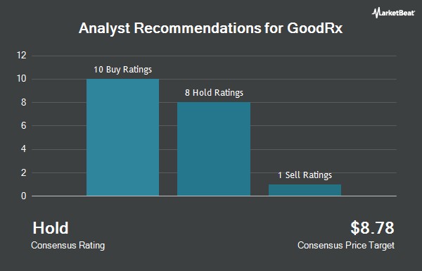 GoodRx Holdings, Inc. (NASDAQ:GDRX - Get Free Report) has been assigned a consensus rating of "Hold" from the thirteen research firms that are covering the company, Marketbeat Ratings reports. One equities research analyst has rated the stock with a sell rating, six have issued a hold rating and six have issued a buy rating on the company. The average 1 year target price among brokers that have covered the stock in the last year is $5.5227.