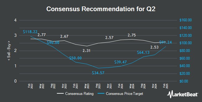 A number of hedge funds have recently made changes to their positions in the business. Glenmede Investment Management LP increased its position in shares of Q2 by 6.7% during the third quarter. Glenmede Investment Management LP now owns 7,865 shares of the technology company's stock worth $569,000 after acquiring an additional 495 shares in the last quarter. Marshall Wace LLP boosted its stake in Q2 by 2,040.7% during the 3rd quarter. Marshall Wace LLP now owns 531,654 shares of the technology company's stock valued at $38,486,000 after purchasing an additional 506,819 shares during the last quarter. UBS Group AG increased its holdings in Q2 by 343.5% during the 3rd quarter. UBS Group AG now owns 1,009,946 shares of the technology company's stock worth $73,110,000 after purchasing an additional 782,220 shares in the last quarter. Connor Clark & Lunn Investment Management Ltd. increased its holdings in Q2 by 32.0% during the 3rd quarter. Connor Clark & Lunn Investment Management Ltd. now owns 209,055 shares of the technology company's stock worth $15,133,000 after purchasing an additional 50,727 shares in the last quarter. Finally, Mackenzie Financial Corp raised its stake in shares of Q2 by 6.4% in the third quarter. Mackenzie Financial Corp now owns 4,630 shares of the technology company's stock worth $335,000 after purchasing an additional 280 shares during the last quarter.