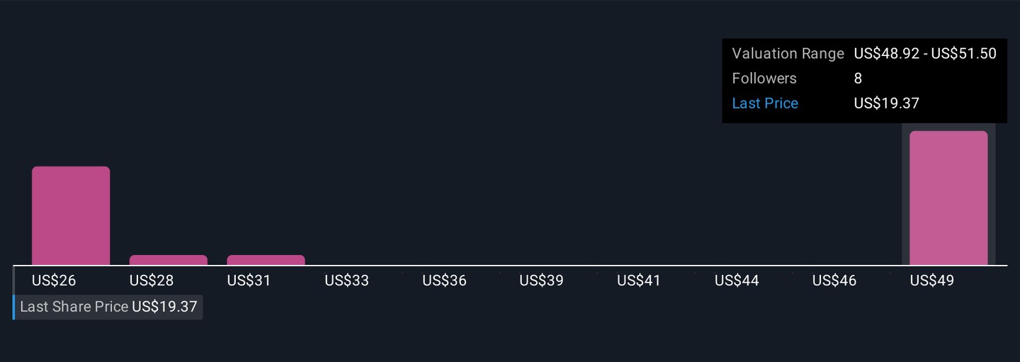 Simply Wall St Community members offered three independent fair value estimates for GPK, ranging from US$22.79 to US$33.36 per share. These varied views reflect how continued volume weakness and competitive pricing pressures may influence expectations for the company’s recovery, so explore a range of perspectives before making any decisions.