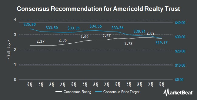 (Get Free Report)Americold Realty Trust, Inc is a real estate investment trust, which focuses on the ownership, operation, development, and acquisition of temperature-controlled warehouses. It operates through the following segments: Warehouse, Third-Party Managed, Transportation, and Other. The Warehouse segment collects rent and storage fees from customers to store frozen and perishable food and other products within the firm's real estate portfolio.