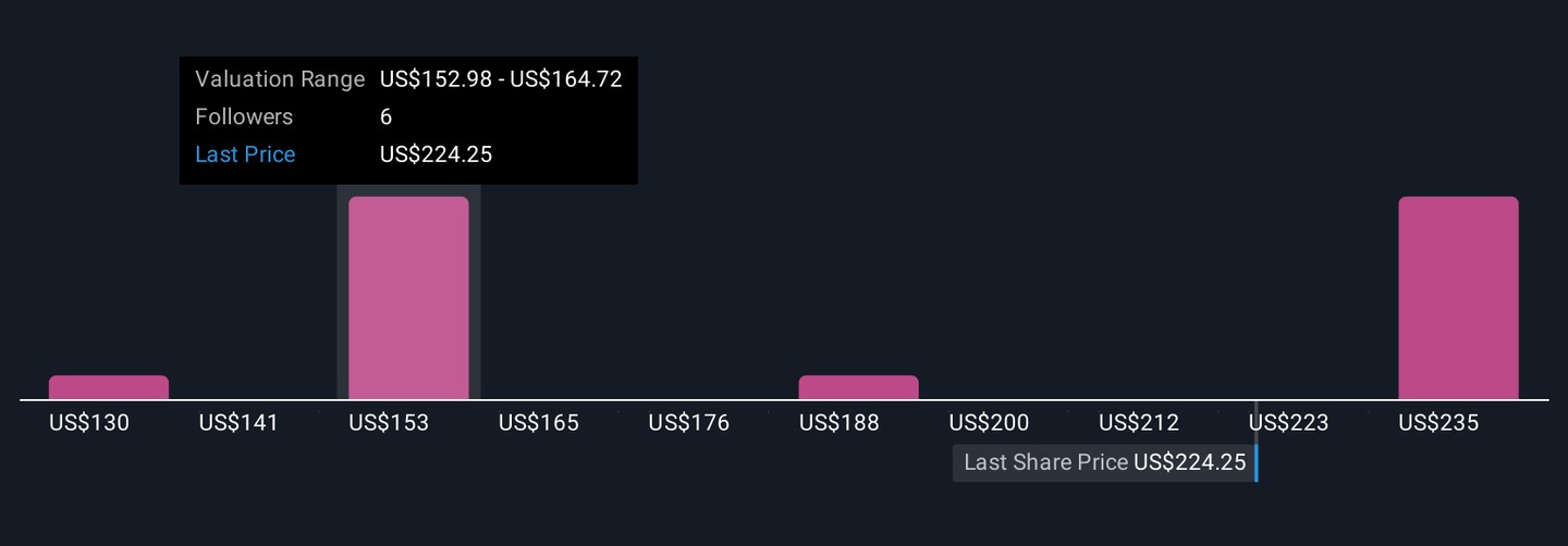 Four members of the Simply Wall St Community estimate fair value for Eagle Materials shares ranging from US$129.50 to US$449.54. These viewpoints emerge as management focuses on infrastructure gains, but persistent risks in residential segments could shape future results quite differently. Explore several alternative viewpoints to inform your decision.