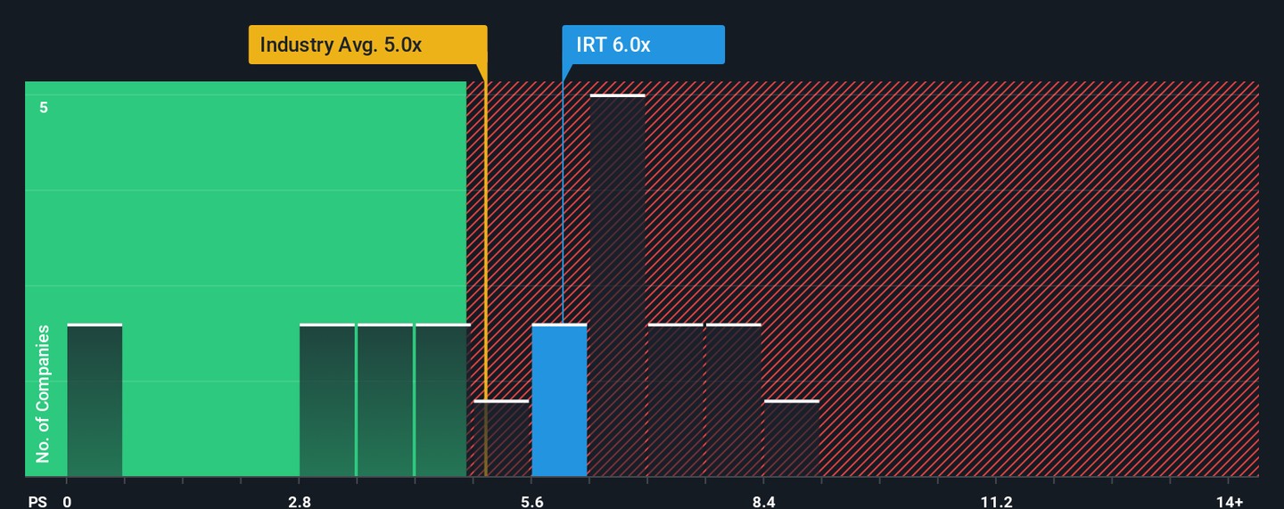 Shifting to a different lens, the company’s price-to-sales ratio stands at 6x, which is above both the North American Residential REITs industry average of 5x and the fair ratio of 4.3x. This suggests the market is putting a premium on Independence Realty Trust, raising the stakes if future growth stumbles. Could this premium hold up if growth expectations disappoint?