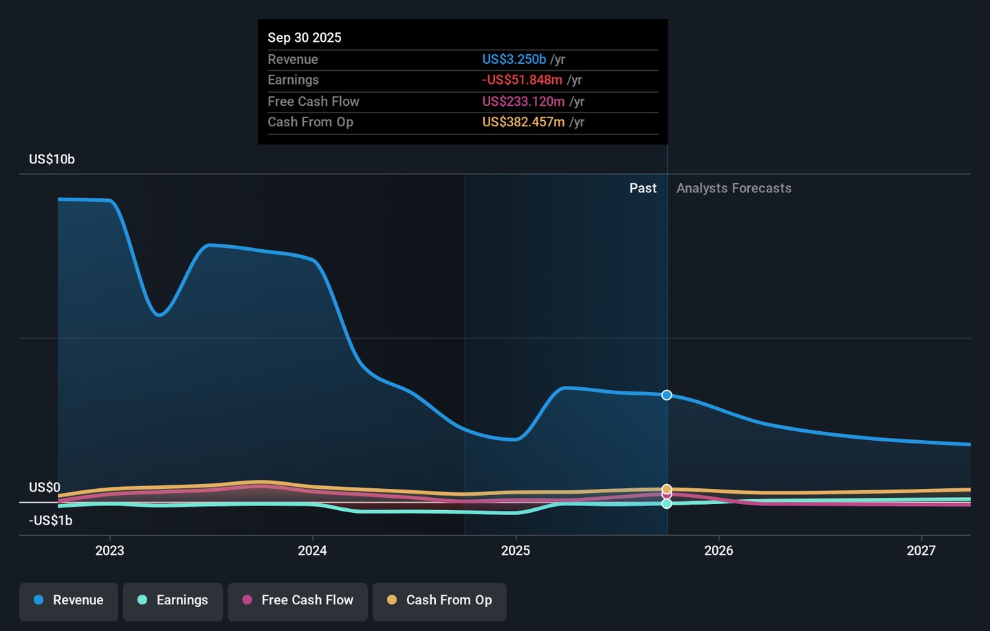 For investors considering NGL Energy Partners, the big picture is about weighing the company's shift from stabilization to growth, now punctuated by its raised earnings guidance and expanded capital spending. The recent surge in adjusted EBITDA guidance, backed by strengthening water and pipeline volumes, could impact near-term catalysts substantially, positioning growth initiatives front and center. These moves, along with recent share buybacks, suggest management is confident in the visibility and sustainability of new volume contracts, potentially improving sentiment and capital allocation discipline. However, challenges remain, particularly around the company's forecast revenue decline over the next few years and its ongoing journey to consistent profitability. With rapidly changing capital commitments and a traditionally volatile sector, risk factors around contract execution and macro conditions may look different now than they did before this earnings update. Reviewing how these latest contracts reshape revenue and cash flow expectations is key. Yet, it's worth noting that execution risk on new volume contracts is something investors should keep an eye on.