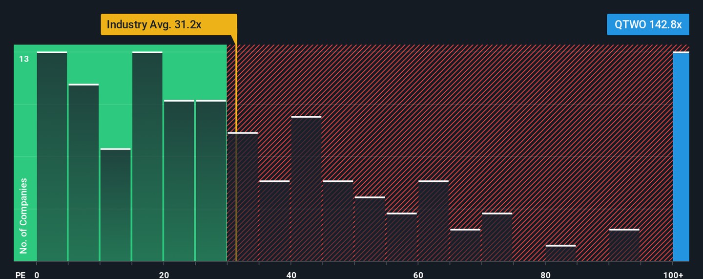 While the earlier narrative leans on future growth and discounted cash flows, looking at Q2 Holdings’ price-to-earnings tells a different story. The company’s ratio sits at 142.8x, far above the industry average of 31.2x and even the peer average of 32.2x. The fair ratio estimate is 59.4x. This wide gap signals potential valuation risk if the market’s optimism fades. Does the current price fully capture the company’s prospects? Or is it running ahead of fundamentals?