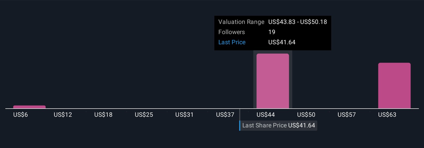 Simply Wall St Community members provided six fair value estimates for Hess Midstream, ranging widely from US$11.87 to US$73.79 per share. Your view on the sustainability of Bakken throughput will shape how you interpret these valuations and the company’s operational risks, explore how these perspectives can inform your own outlook.